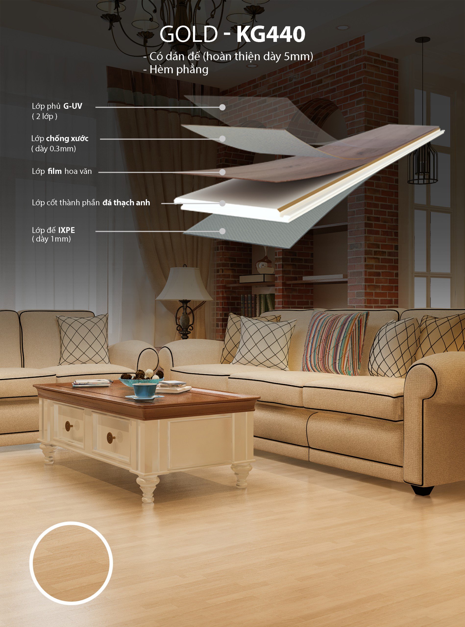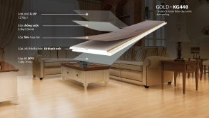 - Lớp phủ G-UV 2 lớp: Quy trình phủ kép – “Double Ultraviolet Lighting” giúp sàn bền đẹp quanh năm, kết hợp tính năng Microban giúp bảo vệ an toàn cho sức khỏe